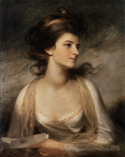 Ti offriamo una riproduzione artigianale su tela dell'opera famosa 'Ritratto di signora come Evelina' di John Hoppner, dal Museo delle Riproduzioni.