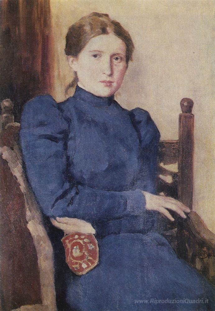 Ti offriamo una riproduzione artigianale su tela dell'opera famosa 'Ritratto di T. V. Vasnetsova' di Viktor Vasnetsov, dal Museo delle Riproduzioni.