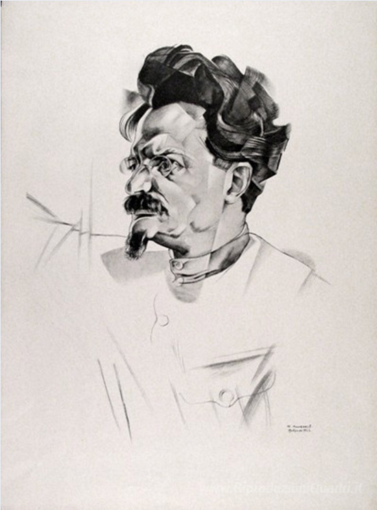 Ti offriamo una riproduzione artigianale su tela dell'opera famosa 'Ritratto di Trotsky' di Jury Annenkov, dal Museo delle Riproduzioni.