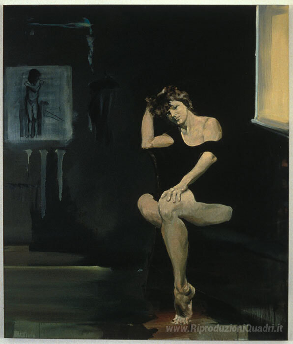 Ti offriamo una riproduzione artigianale su tela dell'opera famosa 'Ritratto di un artista come donna' di Eric Fischl, dal Museo delle Riproduzioni.