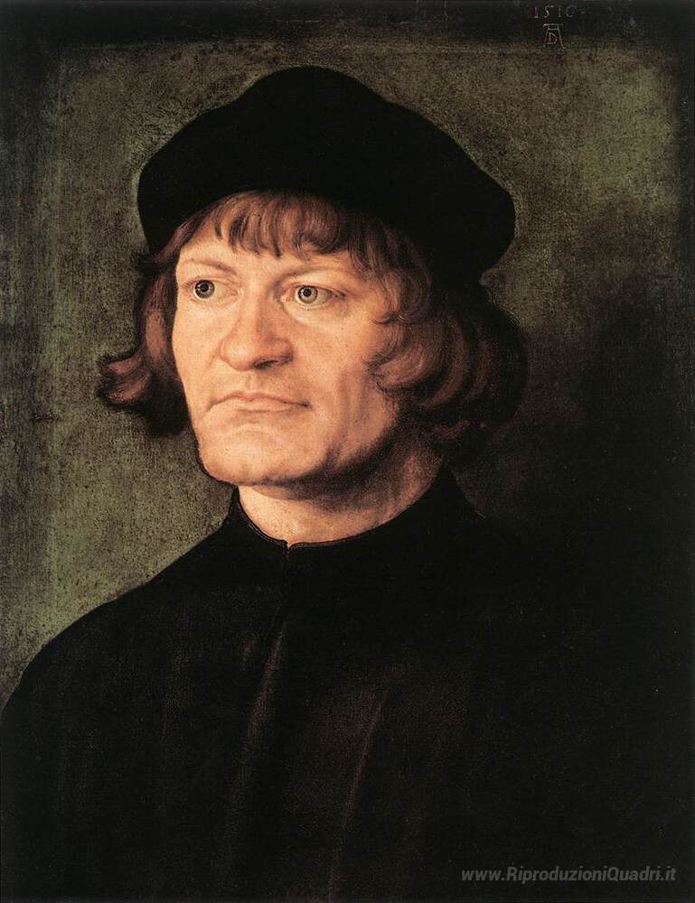 Ti offriamo una riproduzione artigianale su tela dell'opera famosa 'Ritratto di un Chierico' di Albrecht Durer, dal Museo delle Riproduzioni.