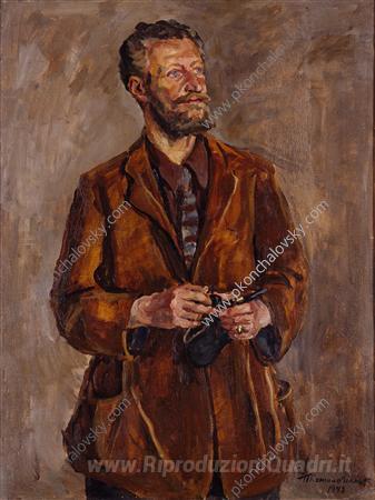 Ti offriamo una riproduzione artigianale su tela dell'opera famosa 'Ritratto di un critico d'arte Sergei Nikolaevich Troynitskogo' di Pyotr Konchalovsky, dal Museo delle Riproduzioni.