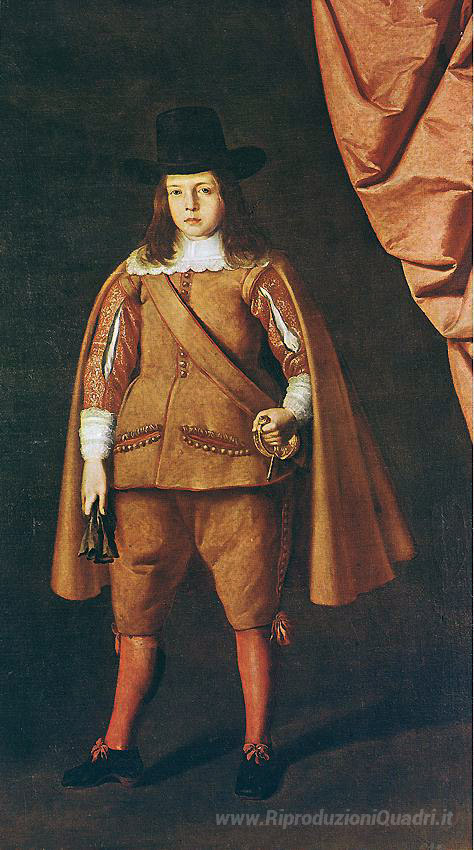 Ti offriamo una riproduzione artigianale su tela dell'opera famosa 'Ritratto di un ragazzo (Il duca di Medinaceli)' di Francisco de Zurbaran, dal Museo delle Riproduzioni.