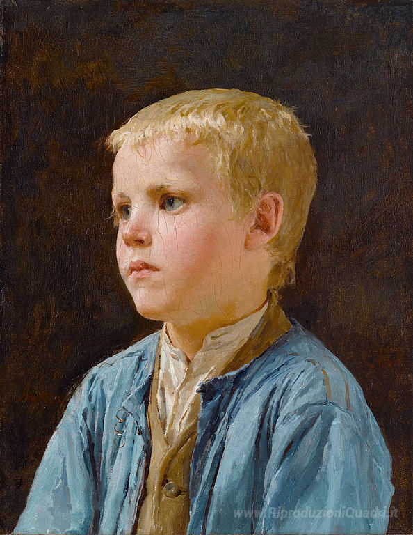 Ti offriamo una riproduzione artigianale su tela dell'opera famosa 'Ritratto di un ragazzo' di Albert Anker, dal Museo delle Riproduzioni.