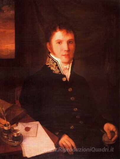 Ti offriamo una riproduzione artigianale su tela dell'opera famosa 'Ritratto di un ufficiale' di Alexey Venetsianov, dal Museo delle Riproduzioni.
