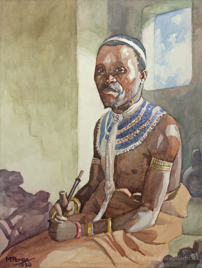 Ti offriamo una riproduzione artigianale su tela dell'opera famosa 'Ritratto di un uomo in abiti tradizionali' di George Pemba, dal Museo delle Riproduzioni.