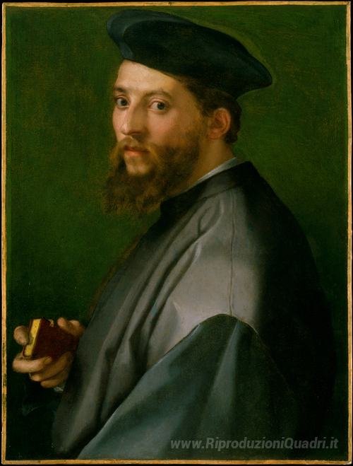 Ti offriamo una riproduzione artigianale su tela dell'opera famosa 'Ritratto di un uomo' di Andrea del Sarto, dal Museo delle Riproduzioni.