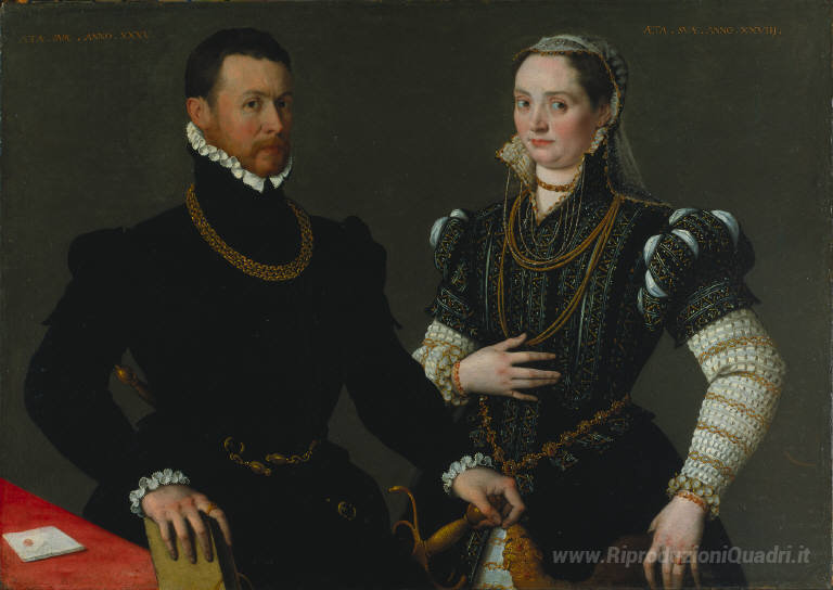 Ti offriamo una riproduzione artigianale su tela dell'opera famosa 'Ritratto di una coppia' di Lavinia Fontana, dal Museo delle Riproduzioni.