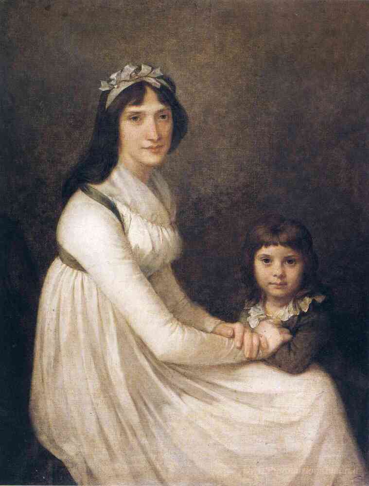 Ti offriamo una riproduzione artigianale su tela dell'opera famosa 'Ritratto di una donna con il suo bambino' di Pierre-Paul Prud'hon, dal Museo delle Riproduzioni.