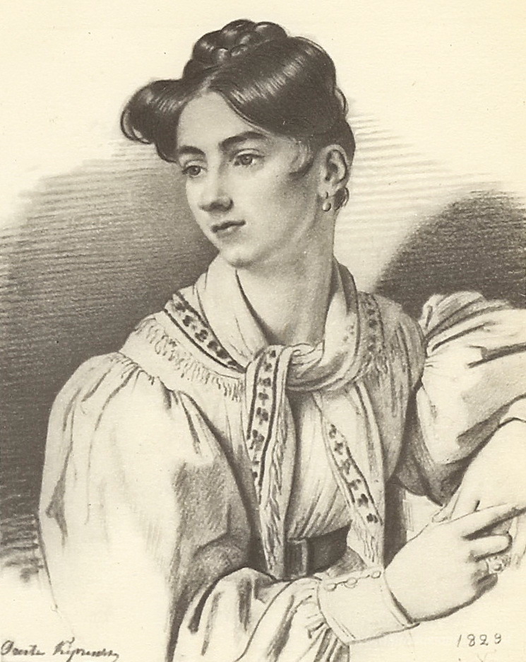 Ti offriamo una riproduzione artigianale su tela dell'opera famosa 'Ritratto di una donna sconosciuta con un fazzoletto al collo' di Orest Kiprensky, dal Museo delle Riproduzioni.