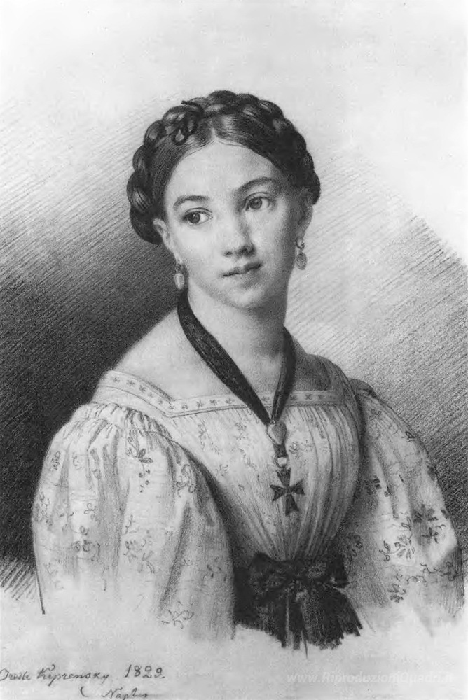 Ti offriamo una riproduzione artigianale su tela dell'opera famosa 'Ritratto di una giovane ragazza' di Orest Kiprensky, dal Museo delle Riproduzioni.