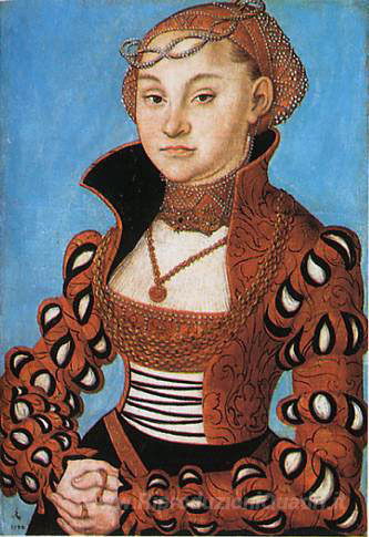 Ti offriamo una riproduzione artigianale su tela dell'opera famosa 'Ritratto di una nobildonna sassone' di Lucas Cranach the Elder, dal Museo delle Riproduzioni.
