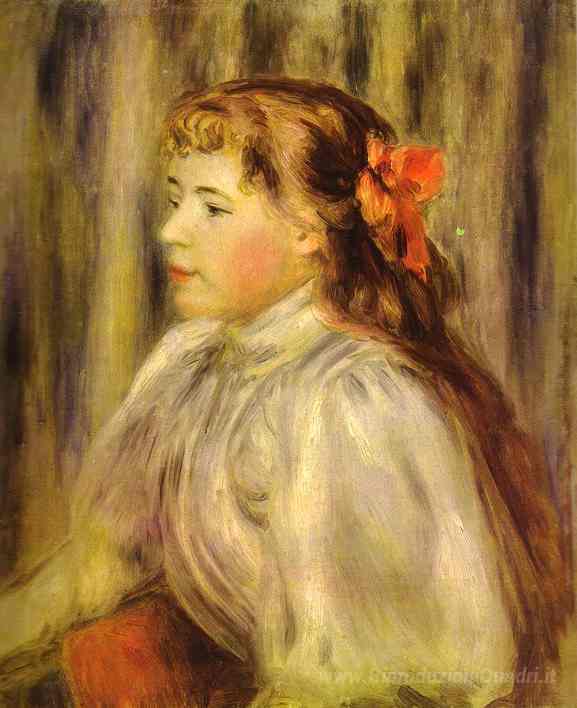 Ti offriamo una riproduzione artigianale su tela dell'opera famosa 'Ritratto di una ragazza' di Pierre-Auguste Renoir, dal Museo delle Riproduzioni.