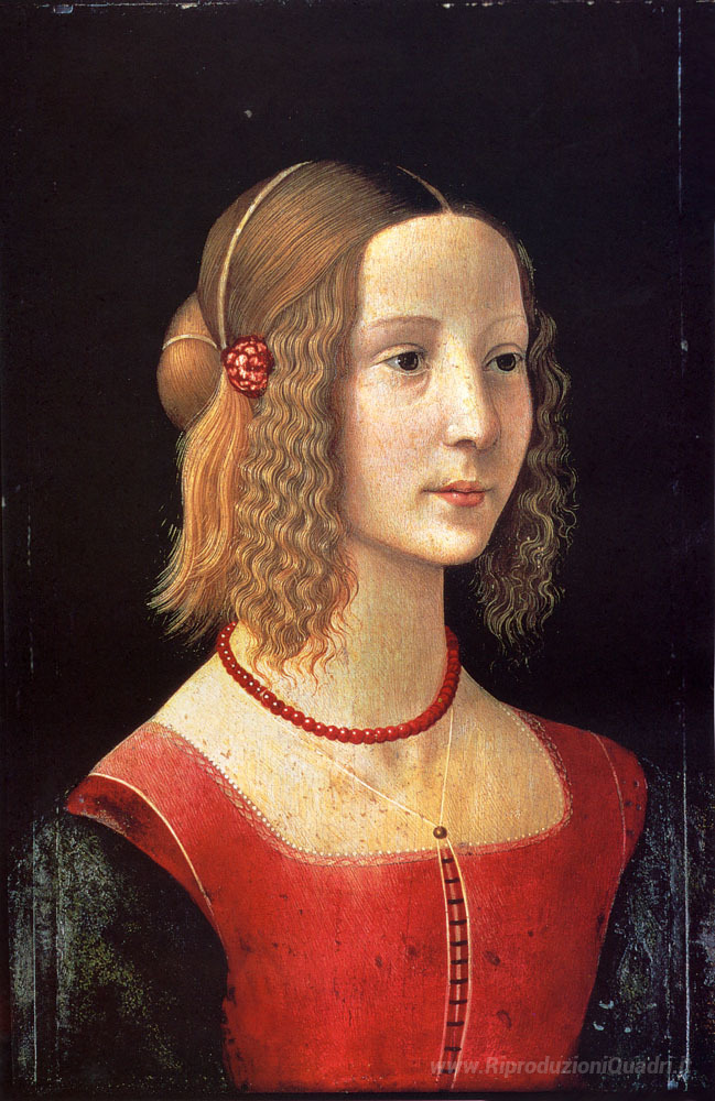 Ti offriamo una riproduzione artigianale su tela dell'opera famosa 'Ritratto di una ragazza' di Domenico Ghirlandaio, dal Museo delle Riproduzioni.