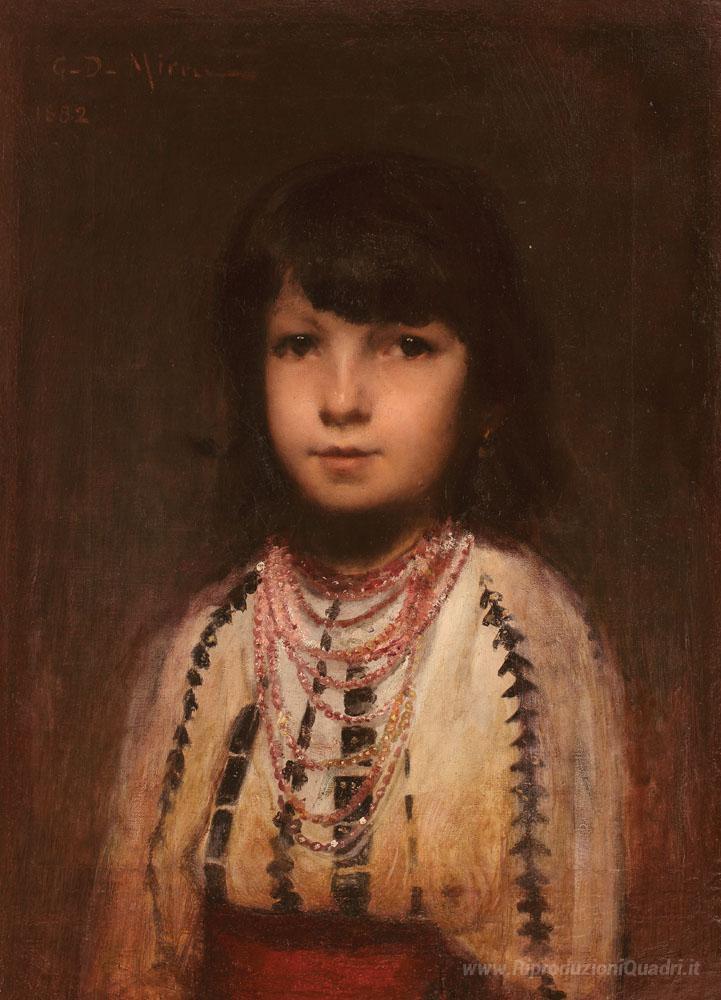 Ti offriamo una riproduzione artigianale su tela dell'opera famosa 'Ritratto di una ragazza' di George Demetrescu Mirea, dal Museo delle Riproduzioni.