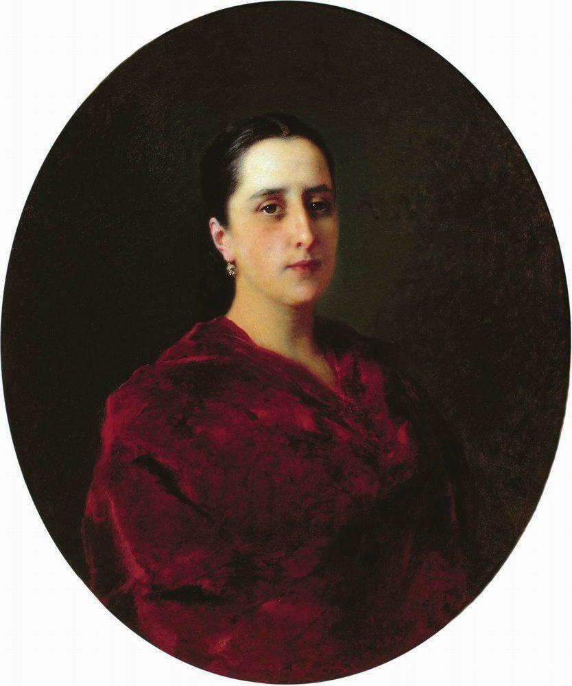 Ti offriamo una riproduzione artigianale su tela dell'opera famosa 'Ritratto di una sconosciuta in vestito rosso' di Konstantin Makovsky, dal Museo delle Riproduzioni.