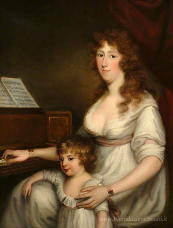 Ti offriamo una riproduzione artigianale su tela dell'opera famosa 'Ritratto di una signora con il suo bambino' di John Russell, dal Museo delle Riproduzioni.