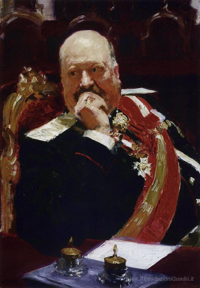 Ti offriamo una riproduzione artigianale su tela dell'opera famosa 'Ritratto di vice ministro dell'Interno, generale di cavalleria e' di Ilya Repin, dal Museo delle Riproduzioni.