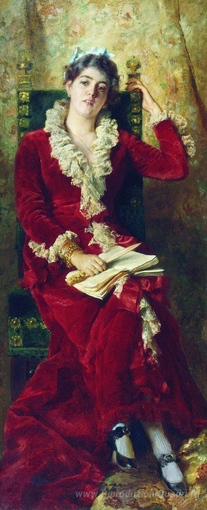 Ti offriamo una riproduzione artigianale su tela dell'opera famosa 'Ritratto di Y.Makovskaya' di Konstantin Makovsky, dal Museo delle Riproduzioni.