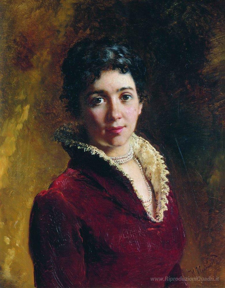 Ti offriamo una riproduzione artigianale su tela dell'opera famosa 'Ritratto femminile' di Konstantin Makovsky, dal Museo delle Riproduzioni.
