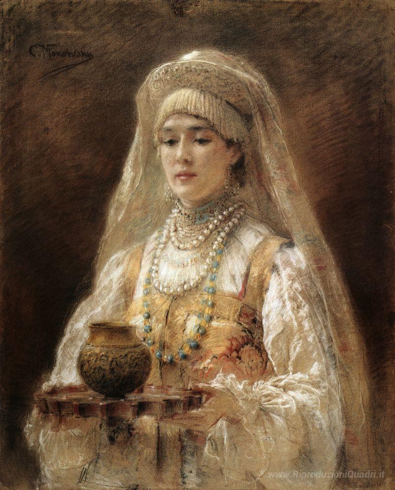 Ti offriamo una riproduzione artigianale su tela dell'opera famosa 'Ritratto' di Konstantin Makovsky, dal Museo delle Riproduzioni.