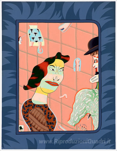 Ti offriamo una riproduzione artigianale su tela dell'opera famosa 'Rosa Incontro' di Jim Nutt, dal Museo delle Riproduzioni.