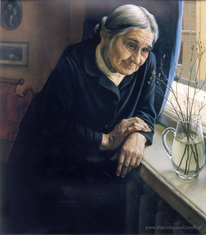 Ti offriamo una riproduzione artigianale su tela dell'opera famosa 'Rosemary Fiorito' di Alexander Shilov, dal Museo delle Riproduzioni.