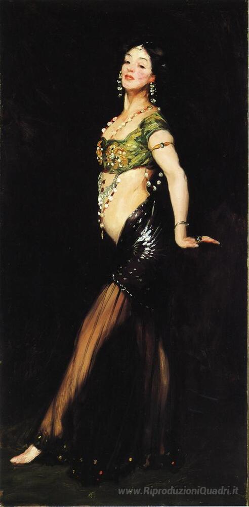 Ti offriamo una riproduzione artigianale su tela dell'opera famosa 'Salome' di Robert Henri, dal Museo delle Riproduzioni.