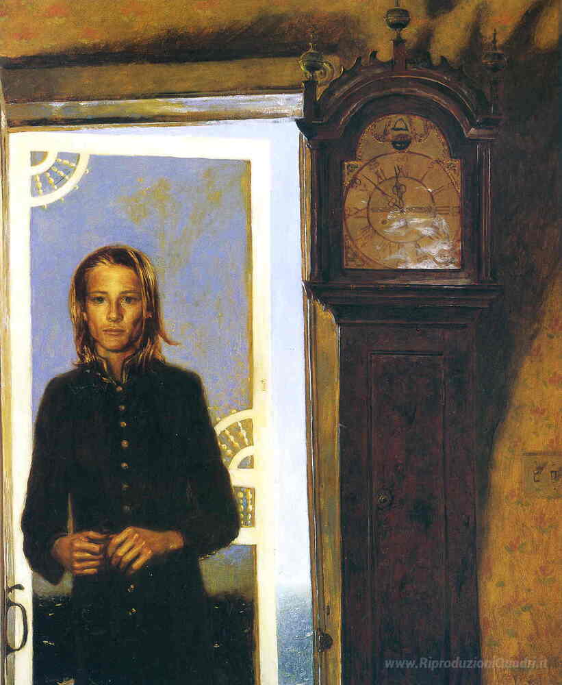 Ti offriamo una riproduzione artigianale su tela dell'opera famosa 'Screen Door al Mare' di Jamie Wyeth, dal Museo delle Riproduzioni.