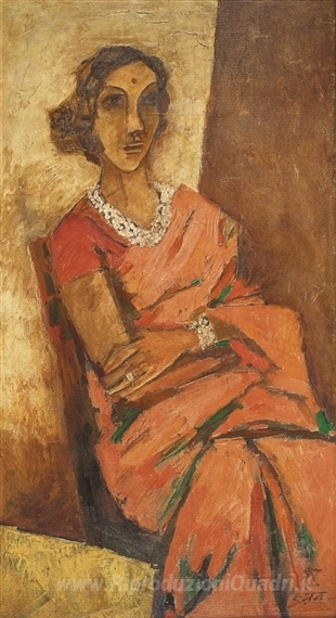 Ti offriamo una riproduzione artigianale su tela dell'opera famosa 'Senza titolo' di M.F. Husain, dal Museo delle Riproduzioni.