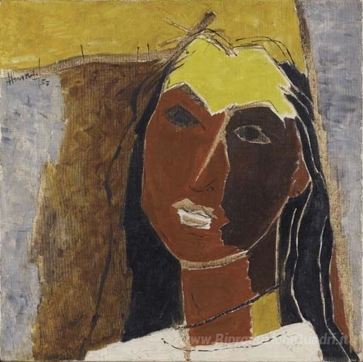 Ti offriamo una riproduzione artigianale su tela dell'opera famosa 'Senza titolo (Ritratto di Sonali Das Gupta, moglie di Roberto Ro' di M.F. Husain, dal Museo delle Riproduzioni.