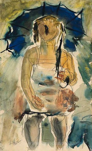 Ti offriamo una riproduzione artigianale su tela dell'opera famosa 'Signora con ombrello' di George Bouzianis, dal Museo delle Riproduzioni.