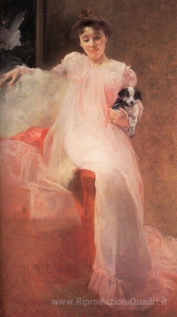 Ti offriamo una riproduzione artigianale su tela dell'opera famosa '?Signora con un cane' di Paul Mathiopoulos, dal Museo delle Riproduzioni.