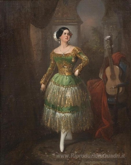 Ti offriamo una riproduzione artigianale su tela dell'opera famosa 'Signora di Siviglia' di Manuel Rodriguez de Guzman, dal Museo delle Riproduzioni.