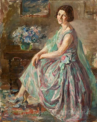 Ti offriamo una riproduzione artigianale su tela dell'opera famosa 'Signora in un interno' di Thalia Flora-Karavia , dal Museo delle Riproduzioni.