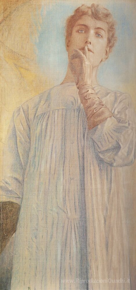 Benvenuti nel nostro esclusivo spazio dedicato ai dipinghi a olio italiani, dove l'arte incontra l'eleganza. Oggi vi presentiamo l'opera Silenzio dell'illustre artista Fernand Khnopff, un capolavoro che cattura l'essenza della contemplazione e del mistero. Khnopff, noto per il suo stile simbolista, esprime attraverso questa tela un'interpretazione visiva della quiete interiore, avvalendosi di colori tenui e delicate sfumature.