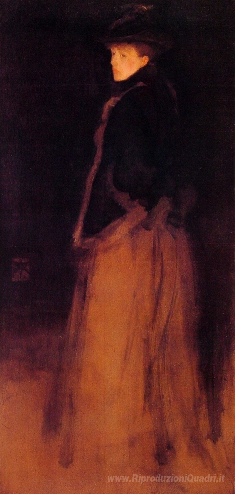 Ti offriamo una riproduzione artigianale su tela dell'opera famosa 'Sistemazione in Black e Brown: The Jacket pelliccia' di James McNeill Whistler, dal Museo delle Riproduzioni.