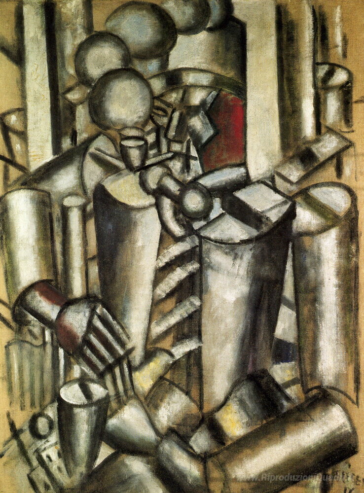 Ti offriamo una riproduzione artigianale su tela dell'opera famosa 'Soldato con un tubo' di Fernand Leger, dal Museo delle Riproduzioni.