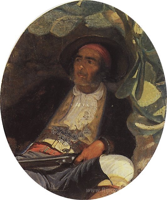 Ti offriamo una riproduzione artigianale su tela dell'opera famosa 'Spagnolo' di Grigoriy Myasoyedov, dal Museo delle Riproduzioni.