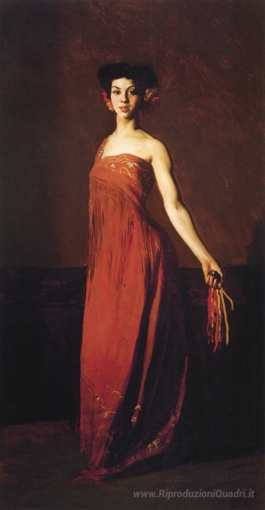 Ti offriamo una riproduzione artigianale su tela dell'opera famosa 'Spanish Dancer - Seviliana (noto anche come ballerino con Castan' di Robert Henri, dal Museo delle Riproduzioni.