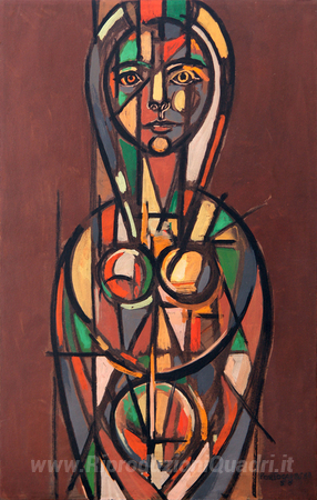 Ti offriamo una riproduzione artigianale su tela dell'opera famosa 'Stained Glass Lady' di Rene Portocarrero, dal Museo delle Riproduzioni.