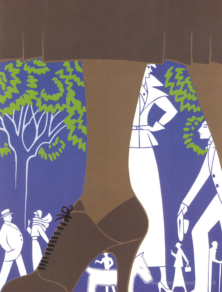 Ti offriamo una riproduzione artigianale su tela dell'opera famosa 'Stivali marroni' di Erte, dal Museo delle Riproduzioni.