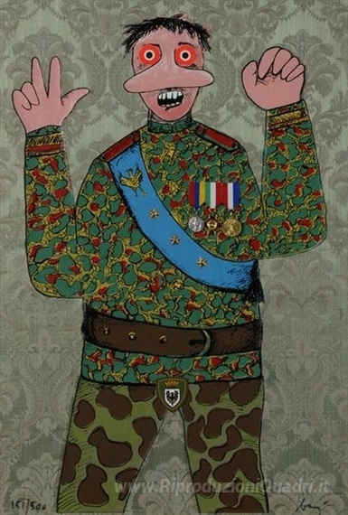 Ti offriamo una riproduzione artigianale su tela dell'opera famosa 'Stratege au double jeu' di Enrico Baj, dal Museo delle Riproduzioni.