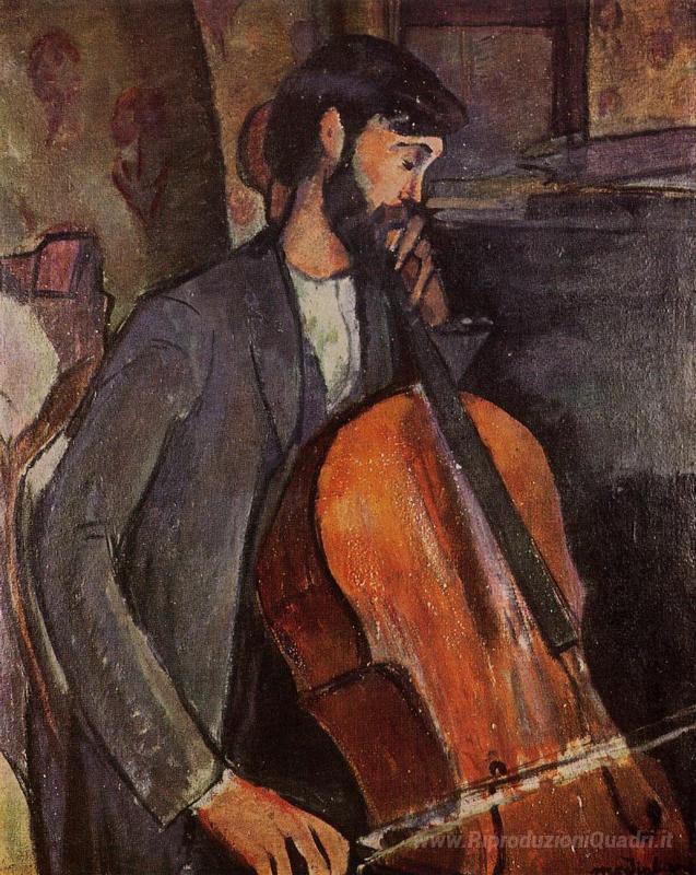 Ti offriamo una riproduzione artigianale su tela dell'opera famosa 'Studio per Il violoncellista' di Amedeo Modigliani, dal Museo delle Riproduzioni.