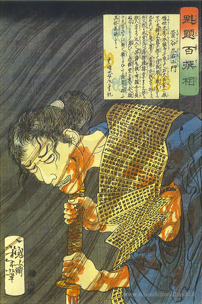 Ti offriamo una riproduzione artigianale su tela dell'opera famosa 'Sugenoya Kuemon' di Tsukioka Yoshitoshi, dal Museo delle Riproduzioni.