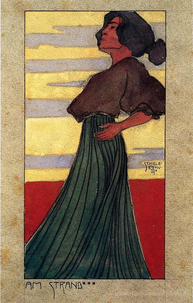 Ti offriamo una riproduzione artigianale su tela dell'opera famosa 'Sulla spiaggia, Chiaro di luna' di Egon Schiele, dal Museo delle Riproduzioni.