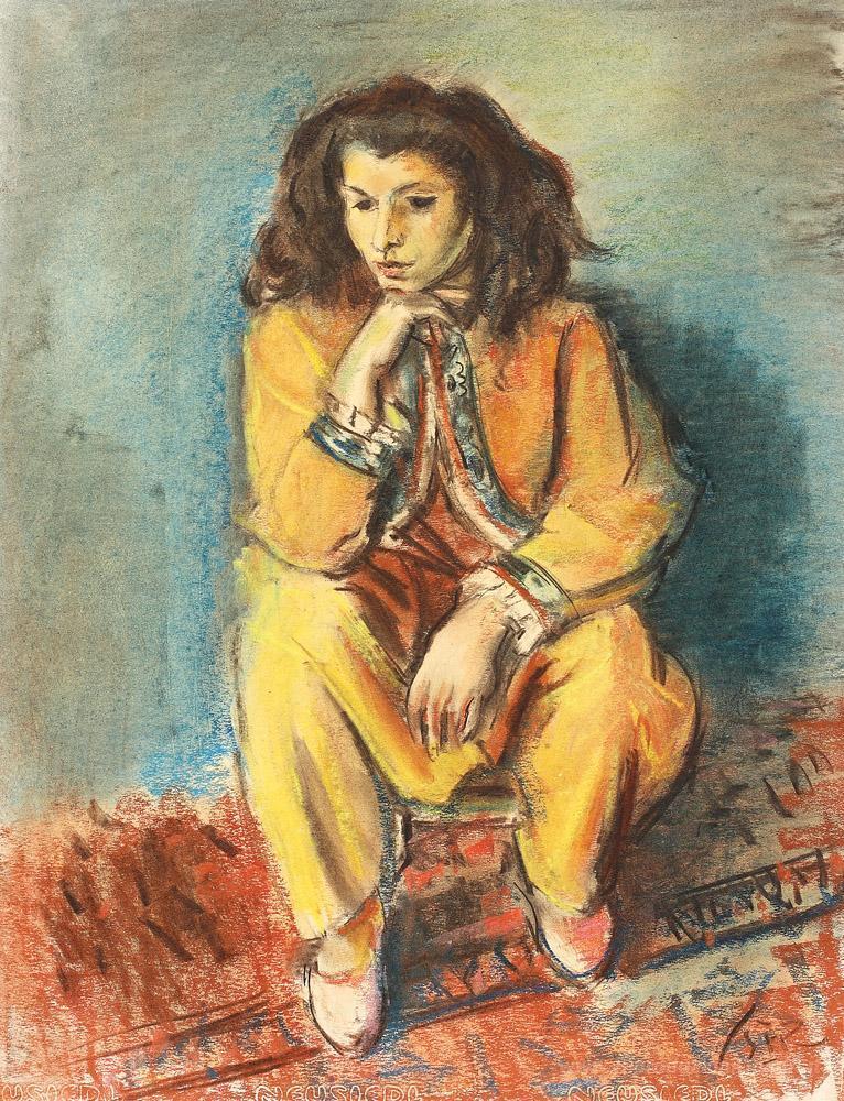 Ti offriamo una riproduzione artigianale su tela dell'opera famosa 'Tatar Donna in giallo' di Iosif Iser, dal Museo delle Riproduzioni.
