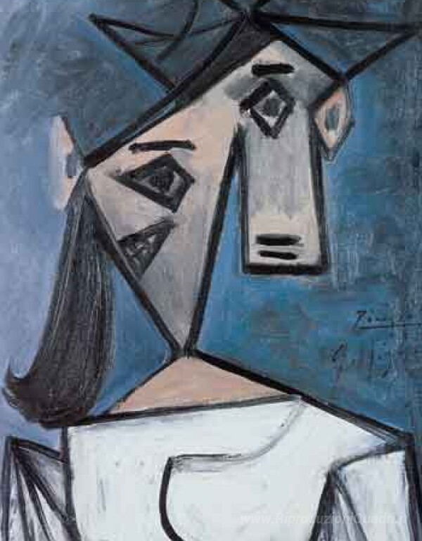 Ti offriamo una riproduzione artigianale su tela dell'opera famosa 'Testa di donna' di Pablo Picasso, dal Museo delle Riproduzioni.