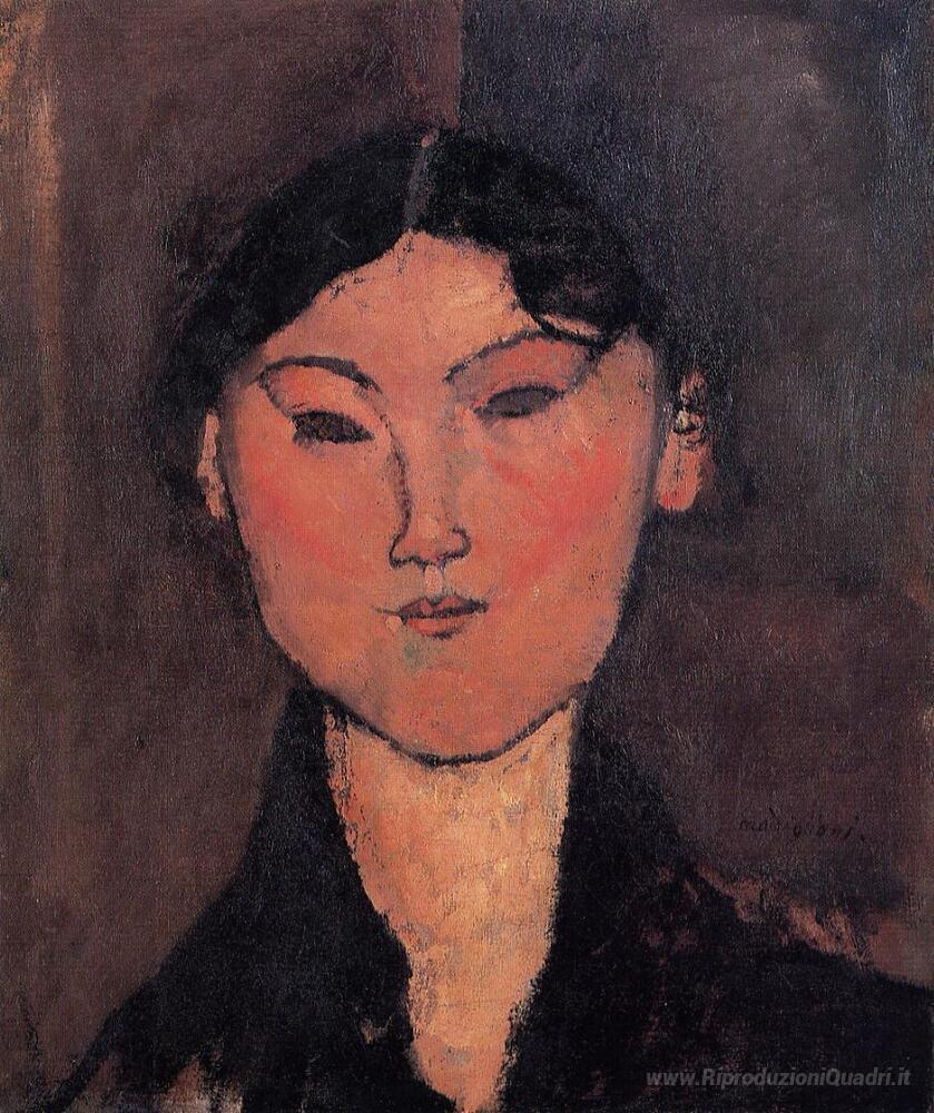 Ti offriamo una riproduzione artigianale su tela dell'opera famosa 'Testa di donna (Rosalia)' di Amedeo Modigliani, dal Museo delle Riproduzioni.