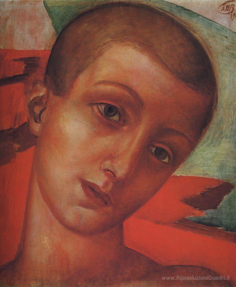 Ti offriamo una riproduzione artigianale su tela dell'opera famosa 'Testa di un ragazzo' di Kuzma Petrov-Vodkin, dal Museo delle Riproduzioni.